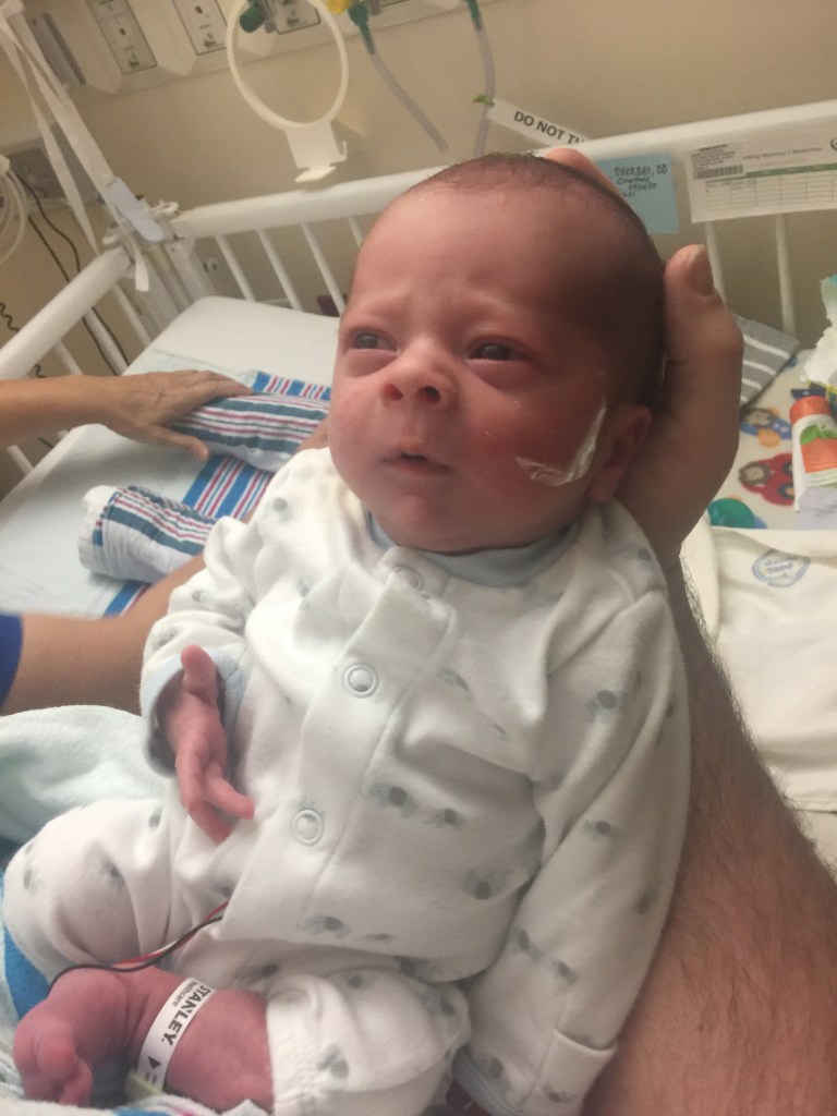Then the pregnancy was so rough that no mortal should have to endure. I’ve heard of others that were worse, and I know there are worse things that could have happened. As scary as what we went through was, I shudder to think of the amount of strength that it would have to take to walk those roads. I doubt I could. Graham came early, and I see the most beautify sight I could never have imagined: my flesh and blood looking back at me. He was so tiny. Not much larger than my hand. Wires and tubes surrounded him. It was like maneuvering a doll behind a computer. The cables kept getting in the way, and you couldn’t get more than ten feet from the wall. I remember, one night in the NICU, I rolled his cable cage to the sink for bath time. However, due to slept exhaustion, I miscalculated the distance. So when I picked the little guy up, the feeding tube snapped out of his nose. Thankfully he was okay, but the look on his face was a pure “What the hell?” look. I realized something after I was done consoling and apologizing to him. My son was free. Even if just for a moment, he was free. I began pacing the room for no other reason than I could. It was the first time I felt like we were free of prison the NICU was to me.