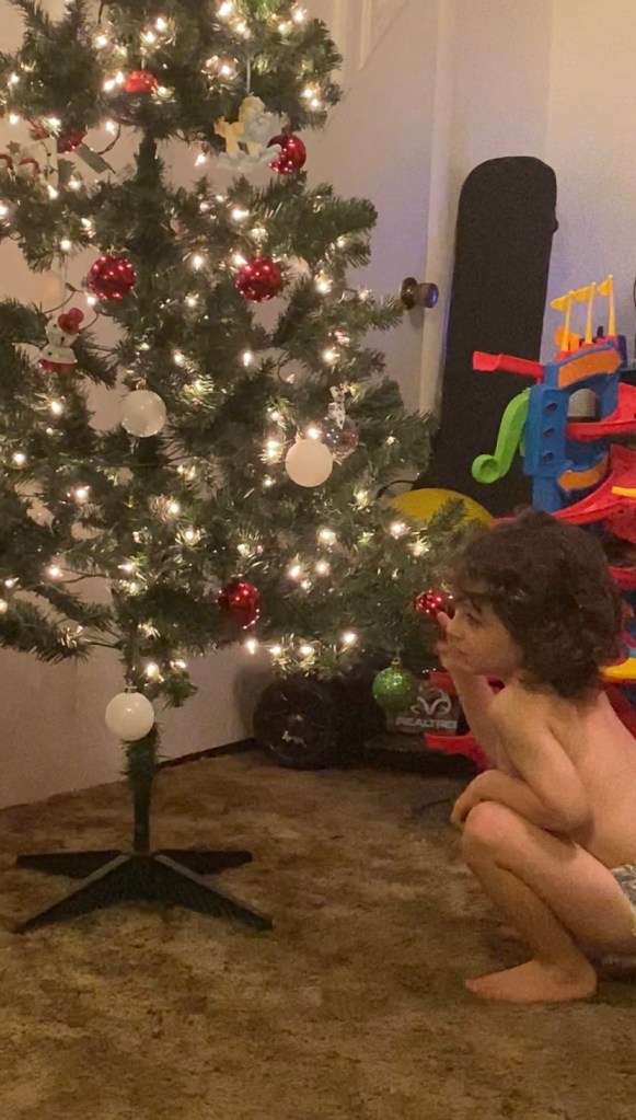 Not thirty minutes prior, he was terrified and wouldn’t enter the house because of the tree.